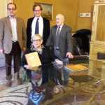 La presentazione finisce, ma il piccolo pubblico presente sembra faticare ad allontanarsi, a staccare gli occhi da quei fogli rilegati, come se ognuno volesse carpire qualcosa di più, un piccolo scoop o un dettaglio illuminante. Portia li tiene saldi, ma concede la visione di alcune pagine, quella di apertura con la scritta della marca (Scia) sopra al quaderno, che – racconta – “Giorgio Bassani andava a comprare sempre dalla Cartoleria sociale, il negozio che fino a pochi anni fa era in corso Martiri della libertà e dove lui ha continuato a servirsi anche dopo che ci siamo conosciuti nel 1977 per l’acquisto di fogli e penne ogni volta che venivamo a Ferrara”. È lei che fa notare come in copertina sia riportato un altro titolo (“Una brutta fine”), poi da lui stesso rimpiazzato dal definitivo “Gli occhiali d’oro” scritto a penna sotto alla sua firma. La signora mostra la pagina finale e si coglie il commento del romanziere, consapevole di essere arrivato alla conclusione di questa fatica, che scrive: “Milano, 27 ottobre 1957, ore 11 di sera, after her no” e poi, sotto, “Respirai profondamente”. Anche molti dei presenti sospirano mentre un quaderno dopo l’altro tornano a essere riposti nella busta. Il manoscritto se ne va, ma per restare insieme ai fogli dell’atto notarile che Portia ha firmato rendendo definitiva la donazione dell’opera al Comune di Ferrara, alla città e a tutti quelli che l’amano e l’hanno amata attraverso queste pagine.