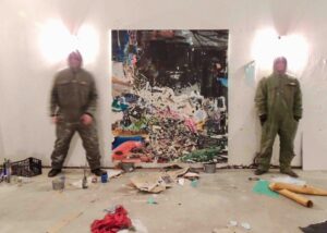 “Un post Eden – spiega la curatrice Sara Ricci – che culmina nella saletta dove è esposta l’opera firmata a quattro mani, la gigantesca Cloaca che ci seppellirà (l’opera scelta anche come immagine-manifesto della mostra, ndr), dove esplodono tutti i detriti che vanno depositarsi fin fuori dal quadro, su tutto il pavimento”. E che il visitatore è invitato a percorrere e calpestare.