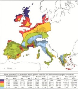 Nella prima versione cartacea dello European Wind Atlas erano riportati dati di ventosità di varie località europee e italiane, ma non erano neanche prese in considerazione le località dell’Appennino centro-settentrionale, considerate improduttive ai fini delle installazioni eoliche. (QUI)