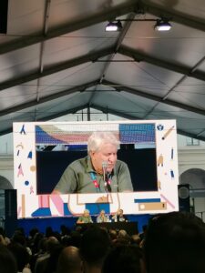 Ovunque sono messe al centro le parole che definiscono il mondo, per “ricucirne il senso, misurarne la tenuta e farne dialogo”, come si legge nell’incipit del programma cartaceo che ormai ho segnato e riempito di chiose e segnalibri. Dalle parole del mutamento climatico a quelle della economia e dei diritti, in senso lato direi della cittadinanza dentro la conoscenza.