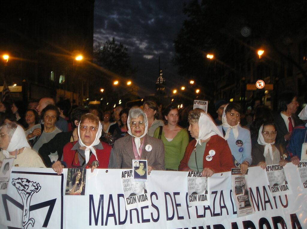 Dopo il golpe militare del marzo 1976, un gruppo di madri argentine ebbe il coraggio di affrontare la dittatura per ritrovare i figli scomparsi, dando vita alla storica marcia che ancor oggi continua ogni giovedì in Plaza de Mayo, forti solo del fazzoletto bianco che si annodano sotto il mento e che è diventato il loro simbolo.