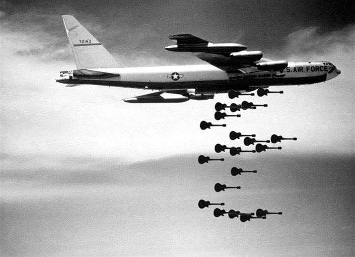l’esercito americano bombarda sganciando Gibson Les Paul