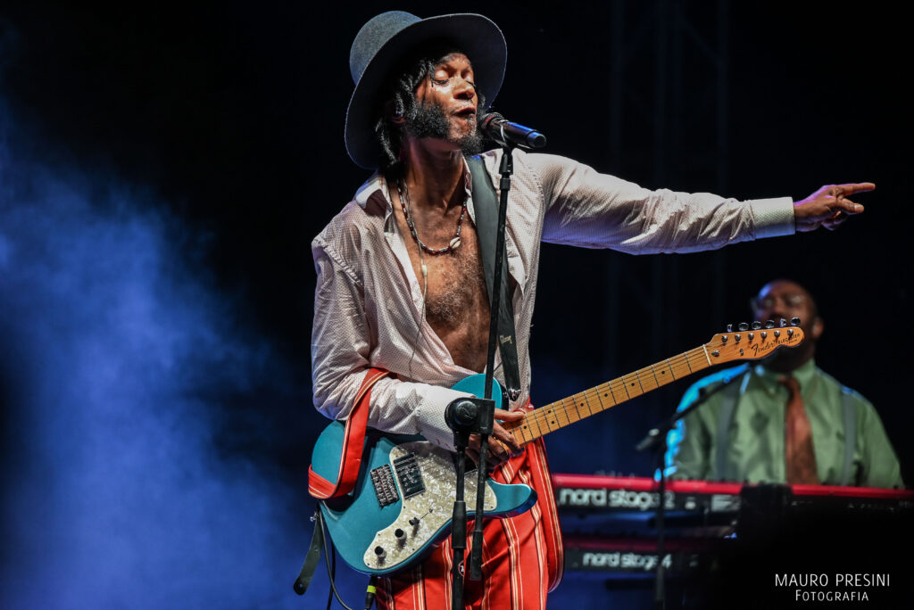 L’originalissima valanga musicale generata da lui e dai quattro musicisti sul palco di Benvignante ha investito piacevolmente il pubblico presente con i suoi evidenti riferimenti alla black music: da Robert Johnson a George Clinton, da Leadbelly a James Brown, da Robert Johnson a Jimi Hendrix, da Marvin Gaye a Sly Stone.