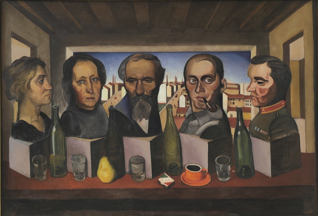 I volti, nei dipinti di Funi, riprendono infatti quasi sempre personaggi familiari (la sorella Margherita super ritratta, i genitori, i fratelli) e poi gli amici, gli artisti, gli intellettuali e le persone che frequenta negli anni. Ma i corpi dei suoi soggetti sono quelli di muratori e operai.