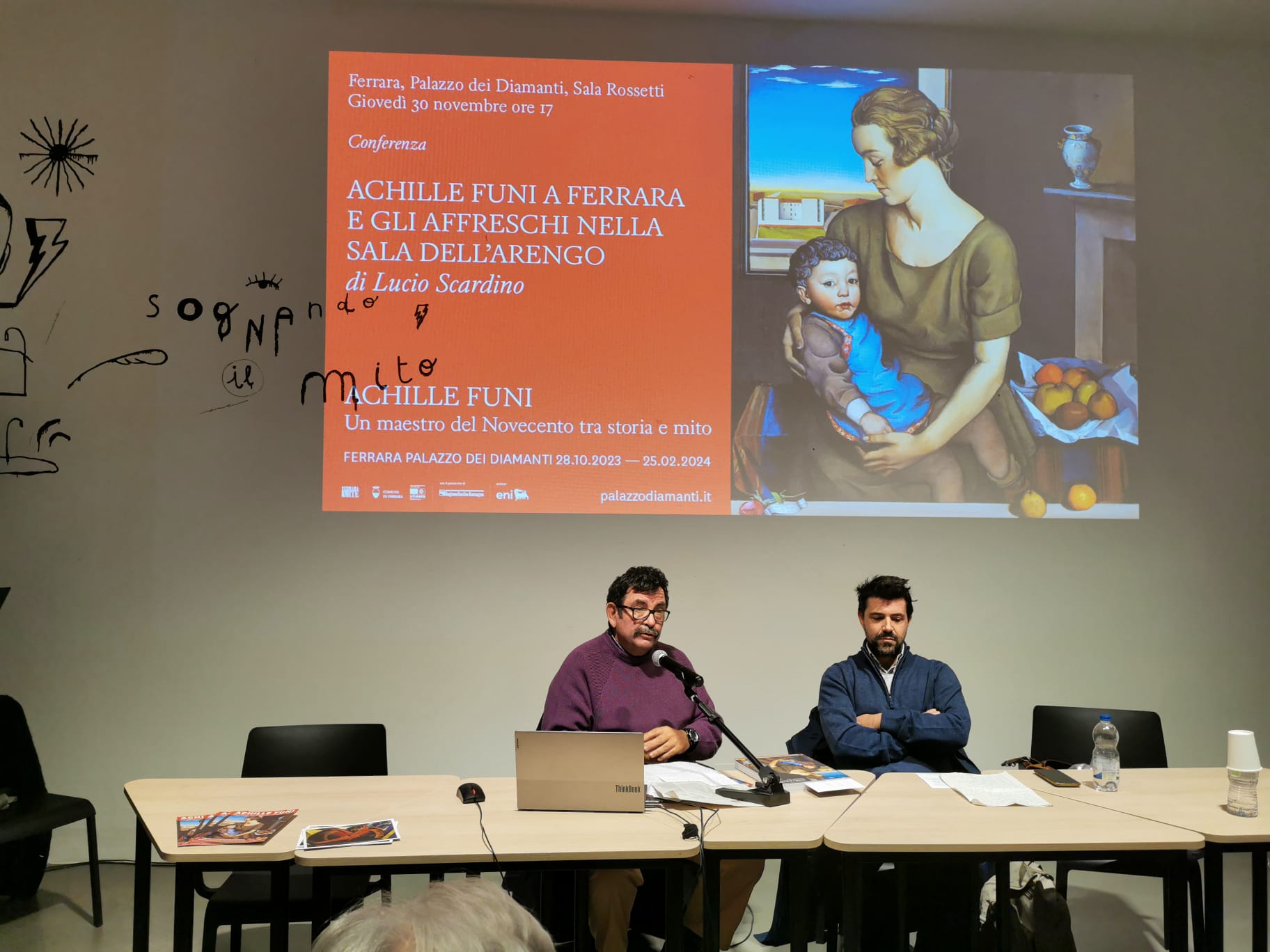 Achille Funi, affermato e originale artista del primo Novecento, nasce nel 1890 e muore nel 1972, con una carriera che culmina negli anni Trenta. Ma che non va associato al pensiero politico dominante dell’epoca. È questo che ha voluto prima di tutto sottolineare lo studioso e critico d’arte Lucio Scardino nell’appuntamento di giovedì 30 novembre 2023, inserito all’interno del ciclo di incontri che proseguirà fino al 25 gennaio per approfondire la grande retrospettiva “Achille Funi. Un maestro del Novecento tra storia e mito” visitabile sino al 25 febbraio a Palazzo dei Diamanti di Ferrara.