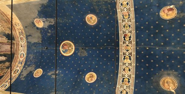 La sua forma (coordinata per elementi salienti successivi, alla cupola), stagliandosi contro il cielo terso e trasparente, fa sì che lo sentiamo non come fondale, ma come centro di uno spazio che gli si estende egualmente intorno, di qua come di là e ai lati.