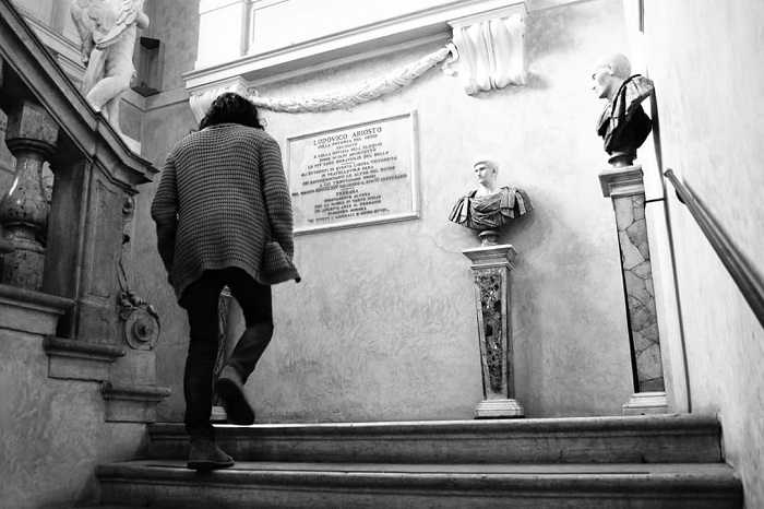 Cliccando qui si può vedere il video con il cantautore nei panni dell’immortale cantore, ambientato nella casa di Ariosto e per le vie e i luoghi di Ferrara legati al suo nome.