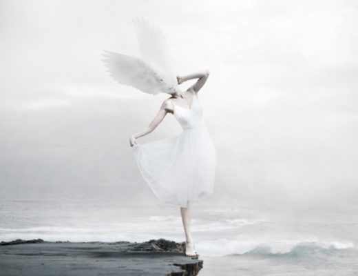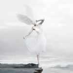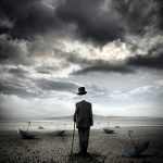 La galleria delle sue opere è sorprendente. Ha saputo dare vita a un universo parallelo, con uno stile riconoscibile e originalissimo. Un mondo surreale, visionario, popolato di sogni inquietanti. Una landa desolata che riporta inequivocabilmente alla realtà. Sospesa tra gravità e leggerezza, in quella ‘Terra di mezzo’ che ciascuno necessariamente attraversa. Un’esile ballerina dalla maschera alata avanza sull’orlo di un precipizio (Serie ‘The White Sky’, XIX); esseri solitari e soli, smarriti, indossano maschere antigas e stringono orsetti di peluche; mongolfiere capovolte galleggiano in cieli apocalittici (‘The Last Day On Earth’). In ‘Lovers’, nella serie ‘Silent Places’, due amanti si tengono le mani, sullo sfondo di un campo di grano infinito; i loro volti sono gomitoli avviluppati in un intreccio di lana, fili tesi percorsi da due minuscoli funamboli in esile equilibrio. In ‘Wind’ la ‘realtà’ è sublimata in un’immagine incantevole: un rettangolo che intrappola il vento, emblema del divenire, del cambiamento che permea ogni ‘cosa’ e che rappresenta – paradossalmente – una stabilità, una ‘certezza’.