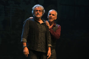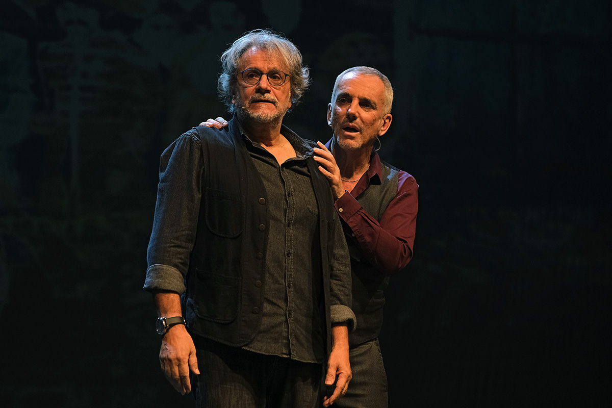 Federico Buffa in scena con Marco Caronna ne “Il rigore che non c’era” (foto Luca Pasqualini)