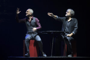 Federico Buffa in scena con Marco Caronna ne “Il rigore che non c’era” (foto Luca Pasqualini)