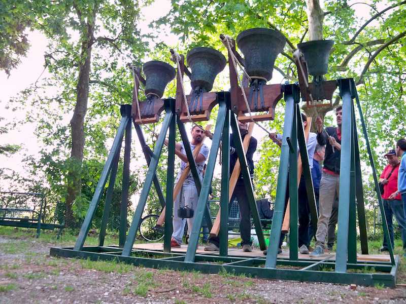 Per chi si è perso l’insolito spettacolo di un castello di campane senza campanile, di seguito le immagini del pomeriggio “Campane sulle mura”.