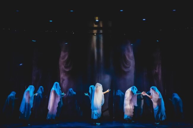 Potente la fusione fra l’energia della danza contemporanea e dei corpi scolpiti e le più moderne tecnologie visive e del light design. La musica e la voce narrante di Michele Vigilante sono anch’esse fonte di grande empatia. Ma è la luce la grande protagonista e complice dei corpi e dei loro movimenti in essa fluttuanti, in uno spazio senza tempo o limiti e dai contorni indefiniti. E come il marmo prende vita dalle mani dell’artista, così le sculture più famose del Canova prendono vita attraverso il corpo di questi splendidi ballerini e la loro forza espressiva. Scorgiamo, tra atmosfere oniriche e surreali, Amore e Psiche, le tre Grazie gioiose e lievi, una bellissima Venere, Perseo trionfante, Teseo mentre lotta contro il minotauro. Ogni gesto è sorprendentemente scultoreo e magico. Emozionante.