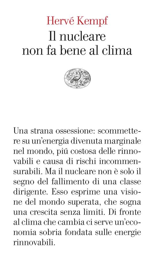 Oltre all’intervista di Armaroli interessante e utile (a cominciare dal titolo, Il nucleare non fa bene al clima, Einaudi 2024), il libretto scritto da Hervé Kempf, giornalista francese, fondatore del quotidiano ecologista Reporterre, e militante ambientalista, che aveva iniziato la carriera lavorando per Le Monde.