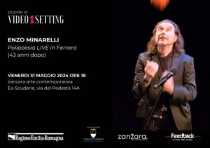 Venerdì 31 maggio 2024 alle 18 performance videosonora Polipoesia LIVE in Ferrara di Enzo Minarelli, poeta sonoro e artista performer legato al Centro Video Arte di Ferrara.