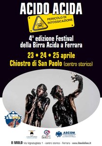 Sarà il Chiostro di San Paolo (piazzetta Schiatti) a fare da cornice dal 23 al 25 aprile prossimi alla quarta edizione di ‘Acido Acida’ Festival della birra acida a Ferrara organizzato da Il Molo British Pub, con il supporto di Ascom Ferrara e il patrocinio del Comune di Ferrara. Oltre alla possibilità di degustare un’ampia varietà di birre acide di stampo britannico, la manifestazione (a ingresso gratuito e con apertura dalle 12 alle 2) proporrà incontri e laboratori a tema, oltre al concerto di Amerigo Verardi, lunedì 24 aprile alle 21.