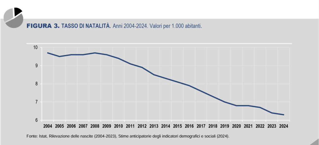 Quel momento è ora arrivato. Lo scenario però nel frattempo è ulteriormente peggiorato per due motivi. Il primo è che le dinamiche più recenti della fecondità anziché evidenziare una risalita verso e sopra 1,5 figli per donna, hanno visto una nuova diminuzione (da 1,44 del 2010 a 1,18 del 2024).
