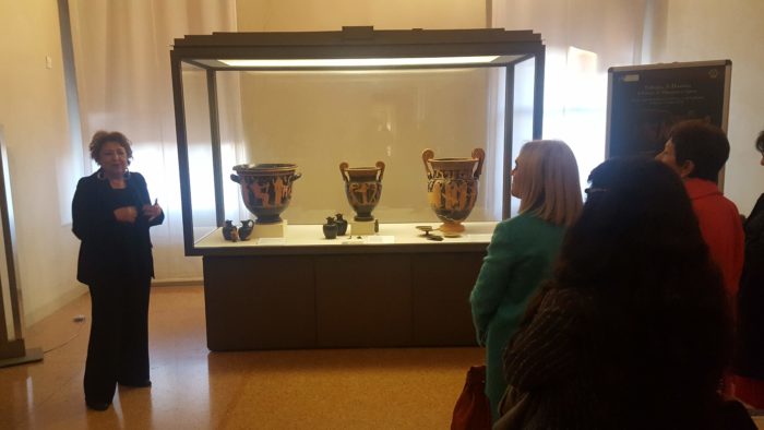 L’attenzione odierna ai pubblici che in un modo o nell’altro incrociano la propria vicenda con quella di un museo, è cosa recente. Fino alla prima metà del secolo scorso, non esporre l’intera collezione in possesso sarebbe stato impensabile. Senza alcunché di esplicativo, oltretutto, poiché risultava scontato che la persona interessata fosse già in grado di ricostruire le situazioni esposte, basandosi sul proprio background. Pareti tappezzate di opere d’arte e vetrine stracolme di oggetti antichi hanno in seguito lasciato spazio a una nuova concezione di museo come servizio pubblico. Se è la cittadinanza tutta a contribuire alla sua stessa esistenza, è giusto che possa essere vissuto dall’intero corpo civico come luogo sociale, senza distinzioni professionali o anagrafiche. Il museo si configura così non solo come spazio deputato alla ricerca e alla conservazione, ma imprescindibilmente anche alla comunicazione. Non è la pochezza di chi vuole piegarsi al “marketing a tutti i costi”, bensì la consegna di informazioni sull’allestimento proposto e sul significato del museo. Il solo modo, questo, per permettere il raggiungimento di una reale messa in comune – comunicazione, ça va sans dire – delle conoscenze attuali in qualsiasi campo. Non rivolgersi alle scuole, momento principe dell’educazione, con una didattica mirata risulterebbe pertanto incomprensibile, certo, ma ciò non toglie che non sia una sfida ancora non del tutto tratteggiata. Senza una sistematica didattica è stato, finora, il nostro Museo Archeologico Nazionale, conosciuto e amato come Museo di Spina, che a ciò ha cercato di sopperire con l’aiuto saltuario del volontariato e di progetti di alternanza scuola-lavoro. E’ grazie a due realtà locali, però, che la mancanza sofferta inizia a trasformarsi in realtà. ‘Al Museo con l’Archeologo, gli Amici dei Musei per Spina’ è l’incontro che sabato 15 febbraio ha visto la presenza dell’associazione Amici dei Musei e Monumenti Ferraresi, la cui attività è diretta alla conoscenza e promozione del patrimonio artistico ferrarese e nazionale, e della cooperativa Le Macchine Celibi, funzionale alla gestione di servizi per gli enti pubblici e di eventi culturali, entrambe protagoniste di un cambiamento in atto. Il progetto consiste nell’offerta, da parte dell’associazione, di visite guidate a dieci classi di dieci istituti superiori ferraresi – almeno per il momento – , gestite dalla cooperativa. Un bell’esempio di interazione tra mondi vicini, che faranno apprezzare alle nuove generazioni la vita quotidiana degli oggetti nel loro contesto e le antiche storie che quei reperti possono raccontare con la loro iconografia.