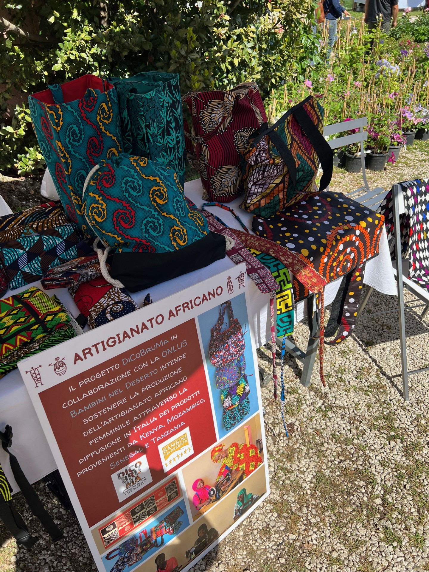È Simonetta Di Cori, fondatrice del progetto DiCoBruMa. Accoglie i visitatori da un discreto, piccolo ma coloratissimo banchetto che parla di Africa e di quelle tonalità intense che chi ha bazzicato per questo meraviglioso continente ha negli occhi e nell’anima.