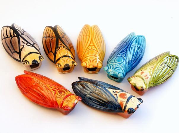 “Ah, il suono delle cicale… Mi riporta a quel bel viaggio in Camargue, a Saintes Maries de la mer”, dice sognante la mia amica Monica Forti. E, in effetti, nel sud della Francia c’è una specie di culto di questo animale, come un porta-fortuna che viene considerato emblematico del loro territorio. Una bella ceramica colorata di questa curiosa forma, che mi pareva quella di uno strano bamboccio in fasce, l’avevo trovata nel salotto di una casa in Provenza e, un’altra simile, si presentava come vaschetta per l’acqua del termosifone di un appartamento di Marsiglia.