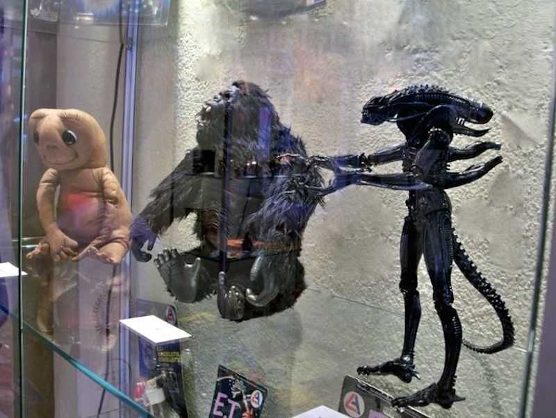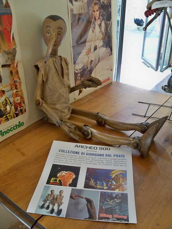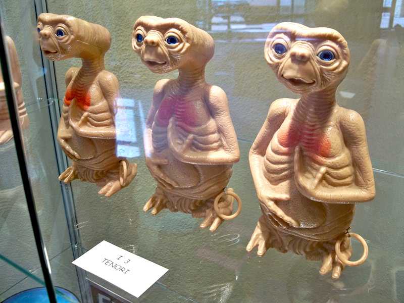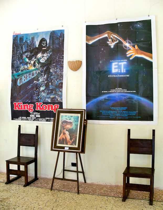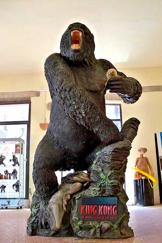 Forse la più pop è “King Kong, Alien, E.T. – Le creature. Collezioni di Giordano Dal Prato e Giovanni Mongini”. Giocattoli, pupazzi, manifesti e gadget sulle creature nate dall’immaginazione del ferrarese – anzi per essere precisi del vigaranese – Carlo Rambaldi: dalle gomme per cancellare agli zainetti ai cestini per la merenda ai dischi con la colonna sonora, fino a una mano da poter indossare con tanto di luce sulla punta dell’indice (batterie incluse!). Ma non c’è solo il buono, per citare una delle didascalie, ci troviamo anche il brutto e il cattivo: King Kong e Alien. E poi originali e improbabili mix cinematografici, forse anche questi curiosi effetti speciali, come quello che vede Pinocchio in sella alla bicicletta al posto di Elliot oppure un povero Et in pugno al gigantesco King Kong che domina la sala con fare alquanto minaccioso.