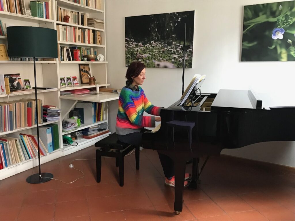 Sulla porta di entrata il cartello “Piffany, scuola di musica”: da subito mi era piaciuto quel connubio sbarazzino fra il cognome di Elisa (Piffanelli) e quella meraviglia che è Tiffany, pensando ovviamente al mio film preferito con Audrey Hepburn. Da settimane cercavamo di incontrarci, lei vive fra Ferrara e Città di Castello, io fra Ferrara e Roma. Ma eccoci qui, finalmente. La sua scuola. E non solo. C’è molto altro. Elisa è musicista, pianista diplomata e perfezionata con maestri della scuola russa e italiana, con un amore per il pianoforte che risale all’età di sette anni. Da tempo si occupa di didattica musicale in relazione al movimento. Ha un metodo originale.