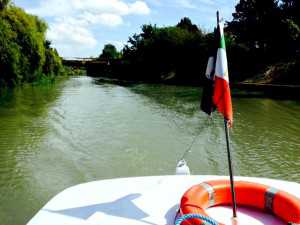 Eppure l’acqua è vita, ancestrale il richiamo che esercita. La sua forza si sprigiona già nella polimorfa vegetazione che ricopre le sponde del Po di Volano. E’ sufficiente percorre in battello il tratto che dalla darsena porta a San Giorgio e osservare gli argini: è uno spettacolo. Gli arbusti celano la vista di strade e case che si affacciano appena pochi metri più sopra, lungo la via Putinati, ed offrono un paesaggio inconsueto, rurale, che ottunde i tratti dell’urbanizzazione.