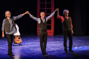 Qui Buffa si conferma il talentuoso narratore rivelato dal piccolo schermo, capace di stabilire collegamenti inediti, creare connessioni inaspettate e aprire digressioni che tengono col fiato sospeso come su una giostra di parole ed emozioni. A fare da collante per questi passaggi di tempo e memorie, di luoghi geografici e spazi intimi ci sono le canzoni di De André e la parte musicale affidata ai bravi Marco Caronna (voce e chitarre) e Alessandro Nidi a pianoforte e tastiere.