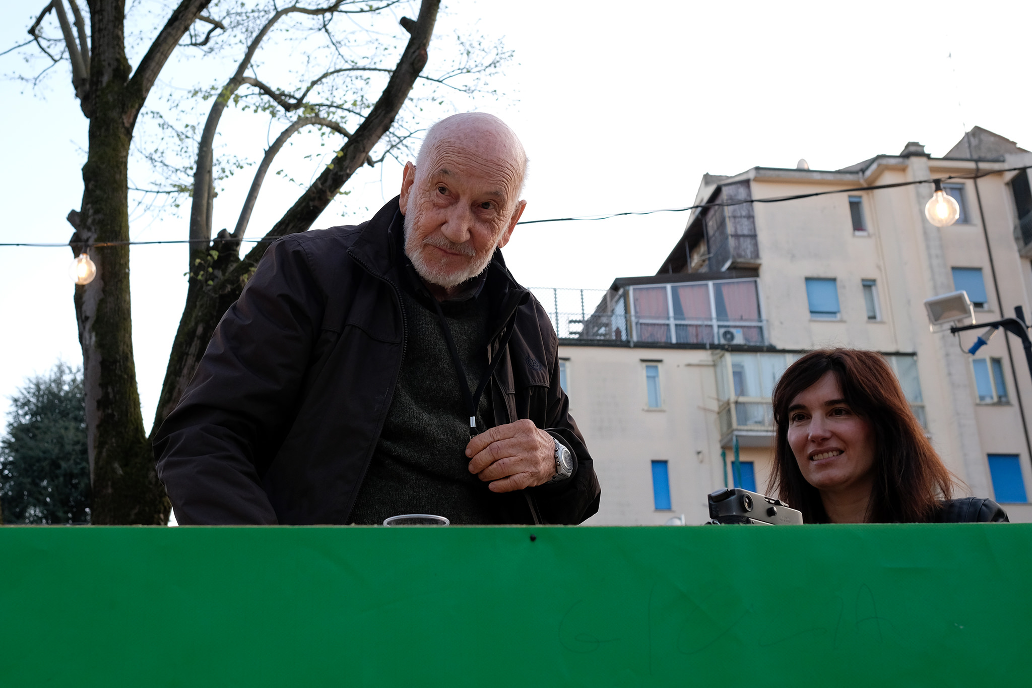 Gianni Berengo Gardin con Daniela Modonesi al festival di fotografia Riaperture 2019 (foto Luca Pasqualini)