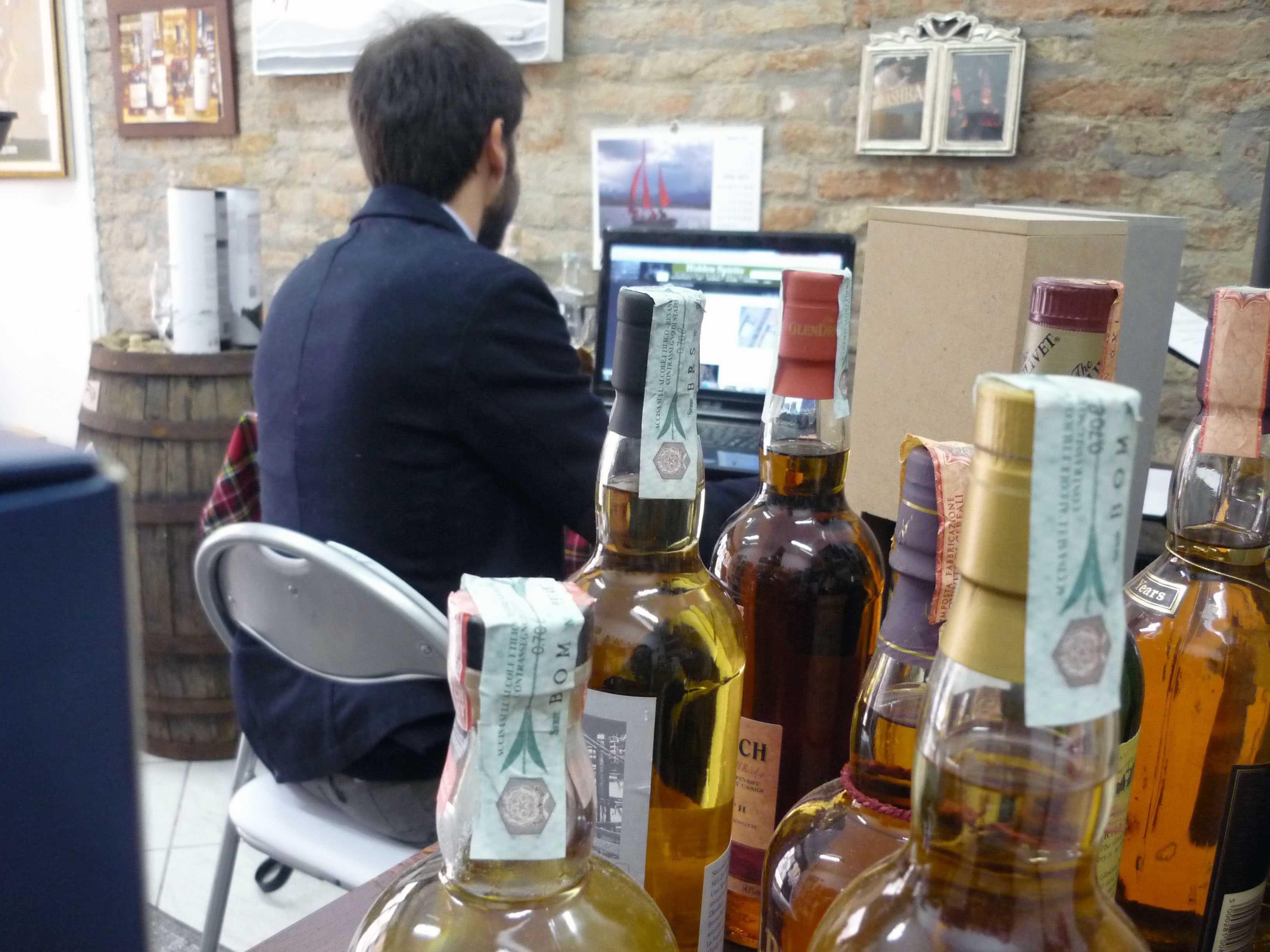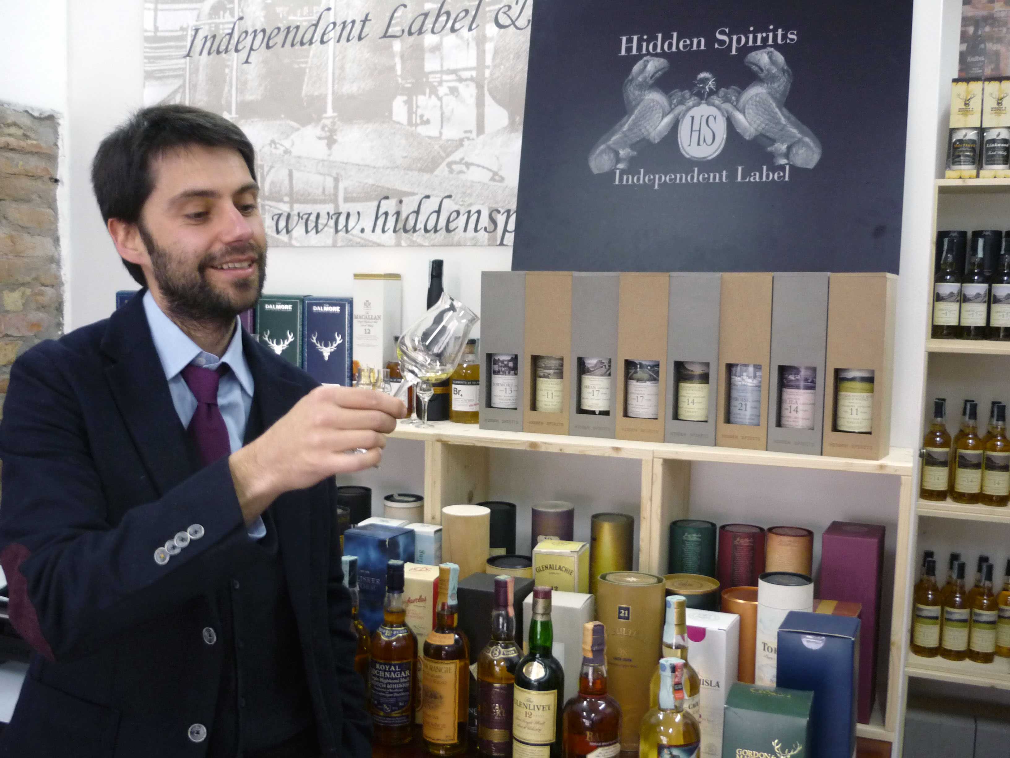 Mentre siamo dentro, un ragazzo si affaccia sulla porta e chiede: “Vendete whisky irlandese?”. “No, solo scozzese”, è la risposta di Andrea Ferrari, che dal 2013 ha fondato in città una piccola azienda che seleziona, imbottiglia e commercializza single malt scotch whisky.