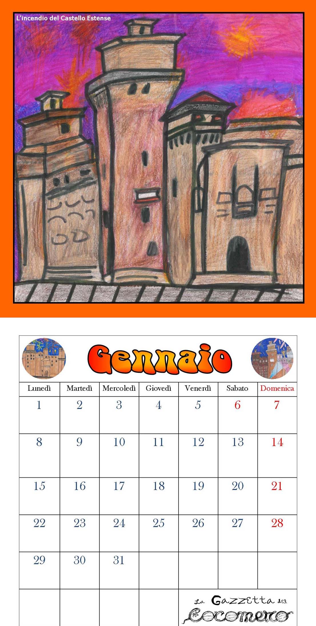 Ogni mese ha un tema specifico: l’incendio del castello estense, la nostra campagna, San Giorgio, il palio, i cappellacci con la zucca, il salto del fosso, il parco del cocomero, i peschi fioriti, la salamina col purè, la scuola, Pirinpinpin, il pampepato e alcune filastrocche ferraresi.