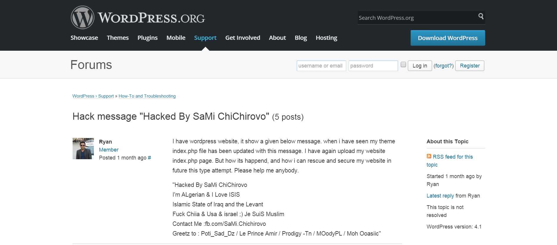 “Con la firma Sami ChiChirovo, ne hanno hackerati centinaia in tutto il mondo, tutti nello stesso modo – afferma – come si può vedere da un sito di supporto agli utilizzatori di WordPress [vedi], per questo appare una cosa da ragazzini.