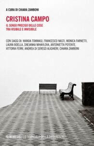 Di lei abbiamo appena ricordato il centenario della nascita, il 29 aprile, e una raccolta di saggi ne ritrae ora e rilancia un profilo nel segno dell’amicizia: Cristina Campo. “Il senso preciso delle cose tra visibile e invisibile”, Mimesis edizioni, Milano 2023. Scrive la curatrice e coautrice Chiara Zamboni: «È la fedeltà alla realtà precisa del visibile che permette lo spostamento di prospettiva e il rovesciamento dello sguardo, per il quale l’invisibile diventa l’autentica trama significante della realtà. È allora che la vita risplende» (ivi, 7). Nell’attesa un attimo di perfezione appare, fulgore di bellezza, un soffio si leva e subito si smorza.