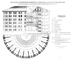 Cover: Panopticon di Bentham, ricostruzione. Fu descritto come “un dispositivo di tale mostruosa efficienza da non lasciare spazio all’umanità”. Il “dispositivo” di cui si parlava era un edificio istituzionale e un sistema di controllo progettato nel XVIII secolo dal filosofo e teorico sociale inglese Jeremy Bentham. Il cosiddetto Panopticon, dalla parola greca che significa “tutto vedere”.