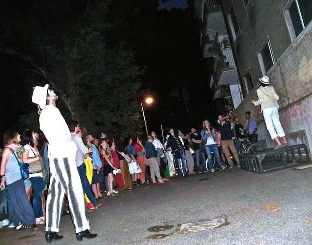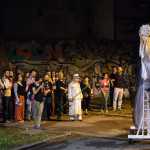 Per due serate “Inferno”, acronimo di “Invasione Notturna Frivola e Ruggente Non Ostile”, ha trasformato le vie e i giardini tra la stazione e via Garibaldi in un teatro a cielo aperto e i cittadini che si avvicinavano incuriositi in un pubblico in corteo, mentre altri seguivano la messa scena dalla finestra o dal balcone della propria casa. Il teatro di strada come modo per riappropriarsi degli spazi pubblici e farli tornare alla loro funzione di spazi di condivisione: cosa ci può essere di meglio da condividere di una pièce teatrale che narra della storia del proprio quartiere? Uno sguardo nuovo e originale per scrutare i marciapiedi e i viali alberati che percorriamo ogni giorno, che può diventare un punto di partenza per pensarli in modo diverso e – perché no – immaginarvi un futuro diverso.