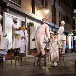 Certo la strada da percorrere verso questa città ideale è ancora molto lunga, ma è comunque bello pensare che nella placida Ferrara quotidiana, in cui viviamo e camminiamo ogni giorno distrattamente, uscendo in una sera di giugno per una tranquilla passeggiata dopocena si possa venire improvvisamente catapultati in un mondo altro. Con questo spettacolo siamo entrati all’Inferno con un Dante contemporaneo, non ci resta che dare spazio alla fantasia e aspettare impazienti il prossimo viaggio.