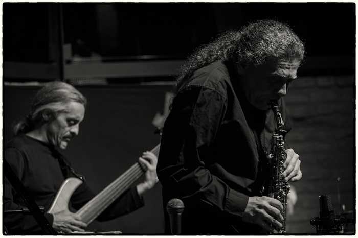 Marco Siniscalco al basso con Javier Girotto e Aires Tango al Jazz club Ferrara (foto di Stefano Pavani)