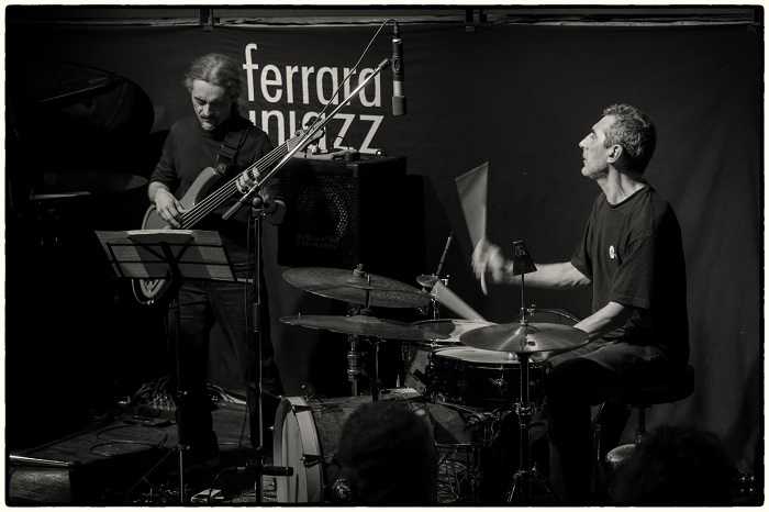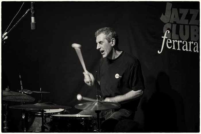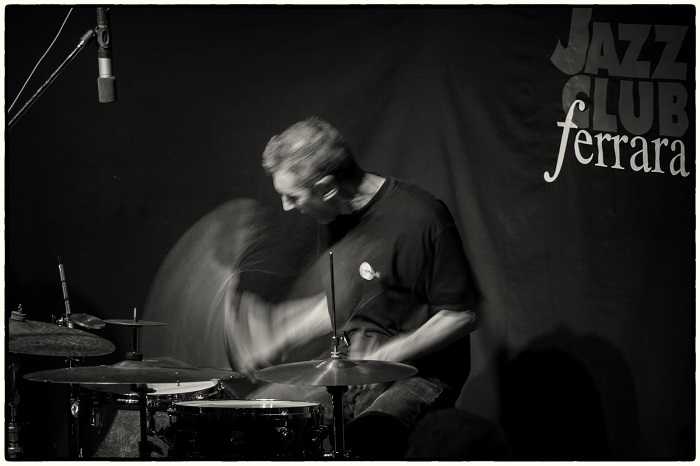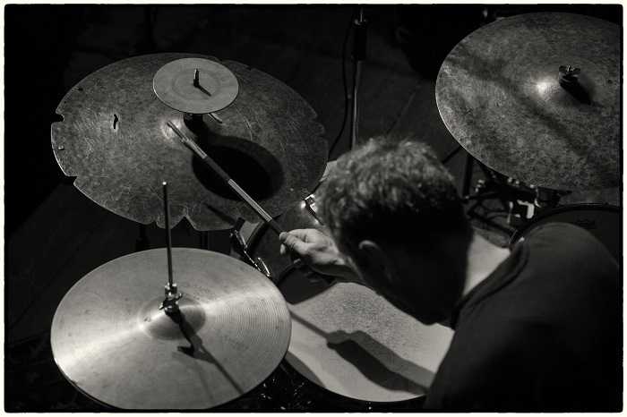 Michele Rabbia alle percussioni con Girotto e AiresTango al Jazz club Ferrara (foto di Stefano Pavani)