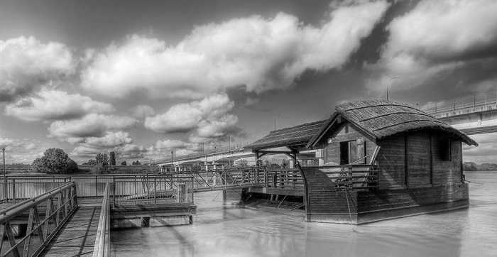 Il Mulino del Po ricostruito a Ro ferrarese sulla base di quello descritto nel romanzo di Riccardo Bacchelli (foto di Nicola Bisi sulla pagina del Comune di Ro-Turismo)
