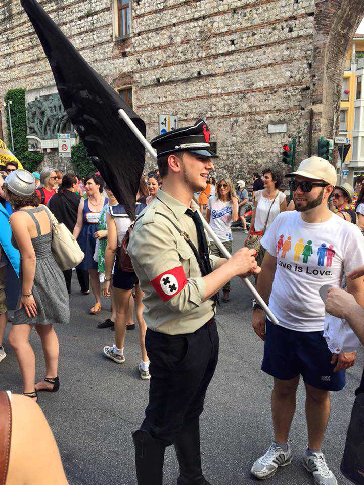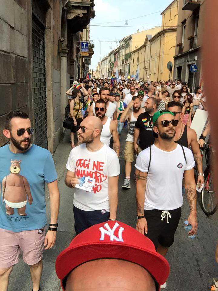 “C’era una signora anziana su un terrazzo – racconta Marcello Cavicchi Dalloco Tucci, della delegazione ferrarese – si era messa una parrucca alla Valentina, un vestito senza spalline, ci faceva le foto mandava i bacini e salutava. Un bar sparava Renato Zero a tutto volume e diverse vetrine addobbate rainbow, la bandiera simbolo del movimento. Una delle cose più belle era la gente che ci guardava dai balconi e dagli angoli delle strade: tutti sorridenti, tutti che salutavano”.