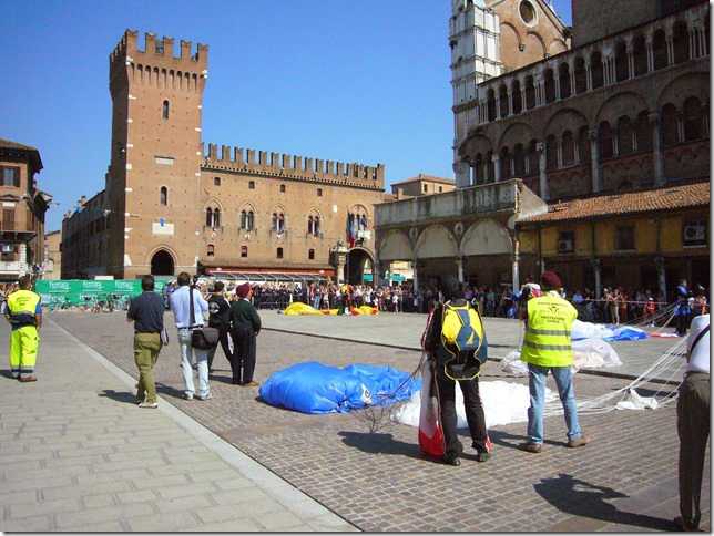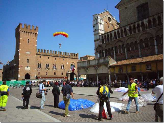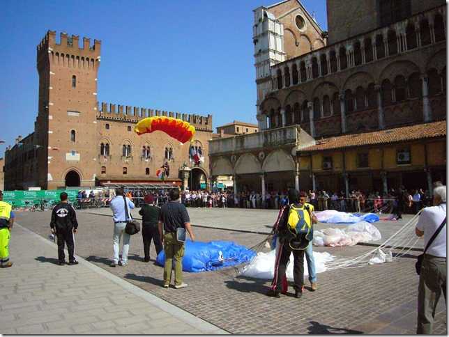 Esibizione di paracadutisti nel centro storico di Ferrara (foto di Aldo Gessi)