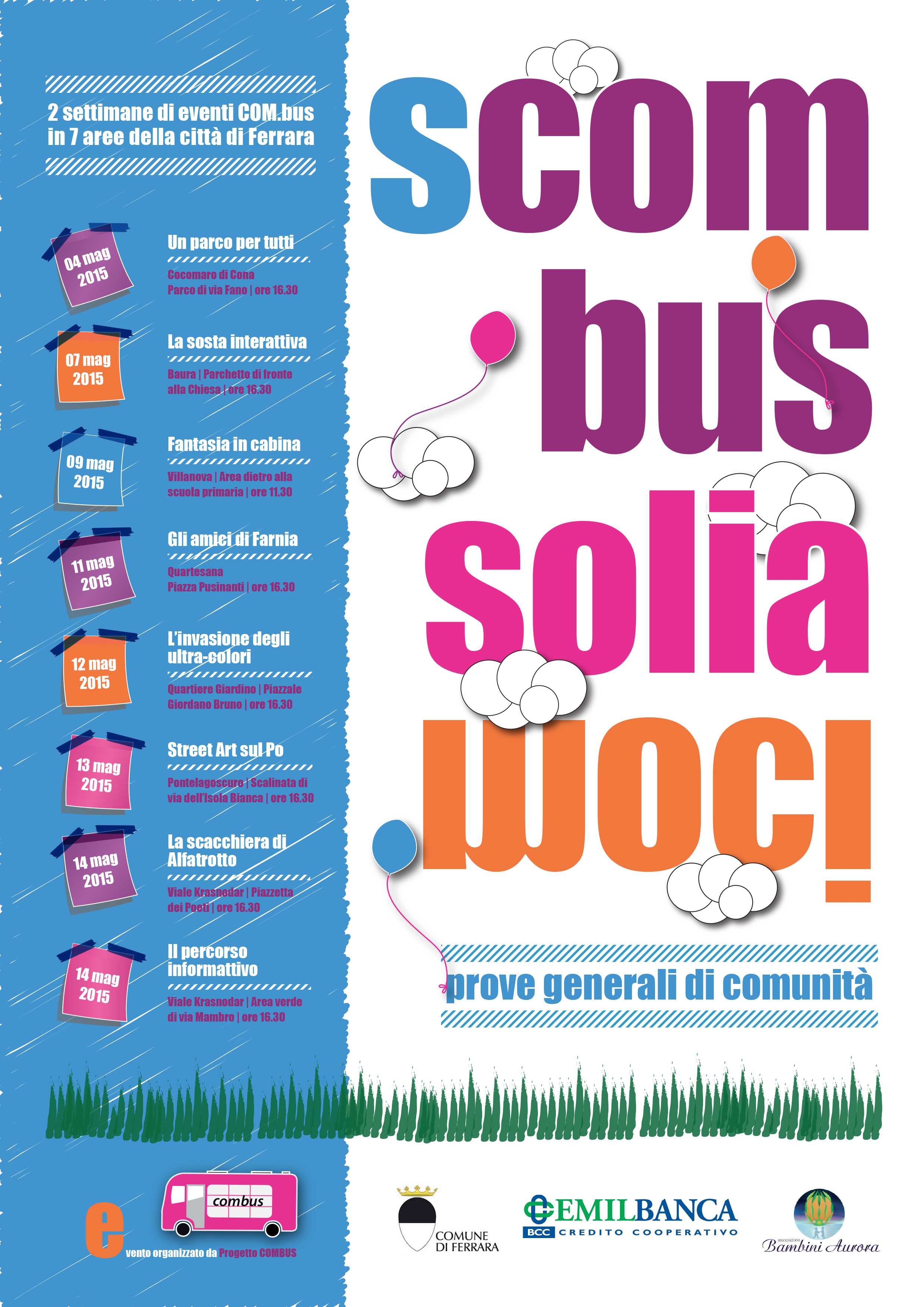 Si tratta di due interventi di riqualificazione urbana e sociale ideati dagli operatori di Com.bus assieme ai cittadini che concludono la settimana chiamata Scombussoliamoci. Ogni giorno c’è stata l’inaugurazione di azioni urbane progettate e realizzate con i cittadini e i bambini ferraresi: via libera alle “prove generali di comunità”.