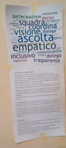 I partecipanti sono stati invitati ad immedesimarsi in una situazione personale di fragilità umana che conoscono direttamente o che sta loro a cuore: a titolo esemplificativo, una donna di 50 anni disoccupata, una ragazza migrante con problemi di salute mentale, un ragazzo di 25 anni in cerca di lavoro e di casa, un bambino di 11 anni che non ha motivazione allo studio e passa le giornate attaccato allo smartphone, una mamma preoccupata di mandare i figli a scuola in biciletta per via del traffico, un commerciante che non riesce ad arrivare a fine mese con la sua attività, ecc…