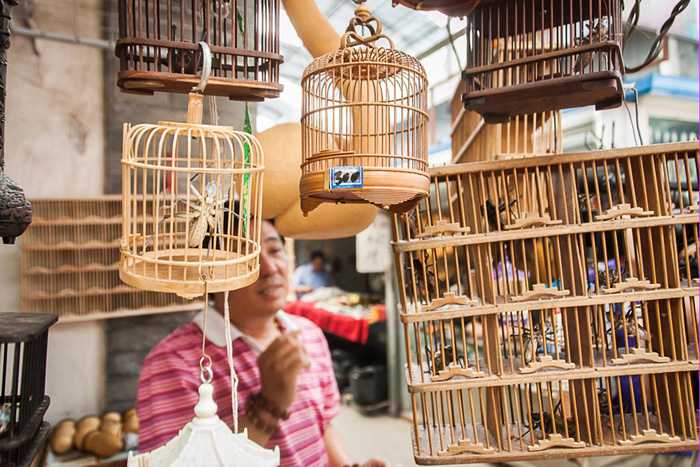 Gabbie per grilli in vendita in una bancarella orientale (foto Alessandro Vecchi su Il Girovago)