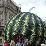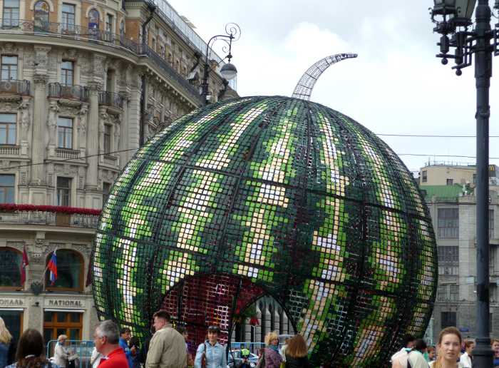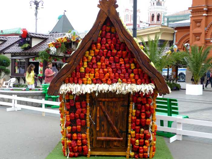 Il centro principale dell’evento è la Manezhnaya Square, dove turisti e moscoviti si affollano, soprattutto nel fine settimana, per provare marmellate tradizionali ed esotiche preparate con petali di rose o olive. Statue alte circa sei metri fatte di arance, albicocche o mele decorano la via che conduce dalla Manezhnaya Square alla Ploshchad Revolyutsii, dove si può ammirare lo spettacolo-balletto sui roller “Cipollino”, di Gianni Rodari, diretto dal famoso pattinatore sul ghiaccio Pyotr Chernyshov. Cipollino è un piccolo di cipolla, il cui povero padre cade accidentalmente sul piede del principe Limone e per questo viene condannato all’ergastolo. Cipollino cerca di salvare il padre, ma deve scappare dalle grinfie del cavalier Pomodoro, del principe Limone e dell’esercito dei Limoncini. Un giorno incontra sor Zucchina che aveva una casa minuscola costruita sul prato delle Contesse del Ciliegio. Il cavalier Pomodoro si arrabbia, ma Cipollino lo provoca e il cavaliere gli strappa il ciuffo e scoppia a piangere. Il paese decide di nascondere la casina nel bosco. Ma il cavaliere ha la sua vendetta: dice ai Limoncini di catturare tutti i maschi del paese e portarli in prigione. Cipollino (e il tocco d’Italia) deve riuscire a salvare i prigionieri, ma per farlo passa un sacco di avventure… e qui, le avventure si possono davvero immaginare davvero tutte. Con la gallina fatta di zucchine, mele, arance e peperoni, la tartaruga di limoni e arance, la casetta costruita con peperoni rossi e gialli oltre che con tante belle zucchine. Vernici speciali le ricoprono, per evitare che si rovinino. E poi ci sono la bambola tipica russa, la farfalla multicolore che comprende anche delle piccole zucche e un vasetto immenso di marmellata. Sullo sfondo un cocomero verde gigante (la stessa struttura che d’inverno si trasforma in luminosa e splendente palla d’albero di Natale.