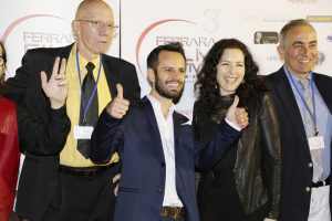 Ferrara Film Festival red carpet, 16 marzo 2018: Massimo Zeri, Maximilian Law, Dahlia Guigui, Giovanni Moriconi (foto Valerio Pazzi)