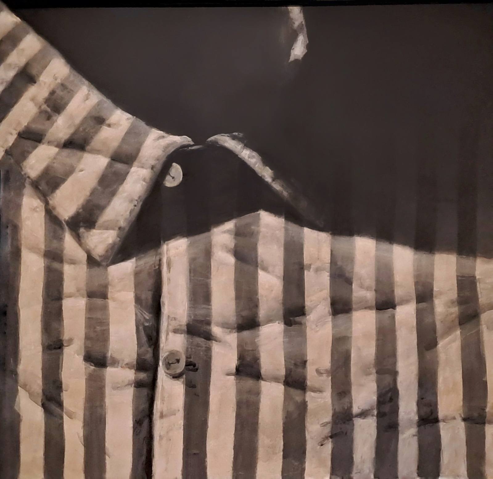 Il cerchio si chiuderà con la donazione di quella stessa opera al Museo della Resistenza del Comune di Ferrara, predisposto da Enrica con i figli a chiusura di questa esposizione. Un indumento – sottolinea Enrica – con dentro un vuoto, che testimonia un’assenza dolorante. E che ribadisce il valore concettuale di una pittura pur così accurata e artigianale, ma evocativa di significati plurimi, segnata dalla tensione tra vero e falso, percezione visiva e inganno della rappresentazione.