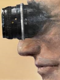 La mostra si apre con un insieme di quadri che vanno dagli inizi degli anni ’60 – dove l’occhio dell’artista nell’autoritratto giovanile diventa un tutt’uno con l’obiettivo di una macchina fotografica – fino all’ultima produzione degli anni Duemila.