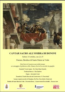 La giornata del 14 ottobre si preannuncia importante per Ferrara, per la sua cultura e la sua tradizione storico-artistica. Finalmente apriranno le porte di Palazzo dei Diamanti e per circa tre mesi si potranno ammirare le opere dell’ultimo “sognatore dell’Officina ferrarese”, Carlo Bononi, in realtà tra i più grandi protagonisti della pittura del Seicento emiliano, assieme a Guido Reni e a Guercino. In occasione dell’apertura al pubblico della mostra monografica, Ferrariae Decus vuole rendere omaggio alla figura dell’artista promuovendo ed organizzando per la serata di sabato 14 ottobre (ore 21.15) un concerto di musica sacra all’interno della basilica di Santa Maria in Vado, un tempio a lui caro e particolarmente frequentato, che ne accolse persino le spoglie all’indomani della morte, sopraggiunta il 3 settembre 1632. I sorprendenti dipinti della navata centrale, del transetto, del presbiterio, della tribuna e dell’abside realizzati da Bononi saranno l’ideale cornice scenico-artistica per le musiche di Johannes Ockeghem, Josquin Des Prez, Claudio Monteverdi e Girolamo Frescobaldi, attraverso un repertorio che unirà il richiamo ai compositori contemporanei del pittore con la tradizione musicale franco-fiamminga in auge nella Ferrara di fine ‘400, quando la chiesa di Santa Maria in Vado fu rinnovata architettonicamente sotto la supervisione di Biagio Rossetti.