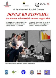 L’Istituto di Storia Contemporanea, il Centro Documentazione Donna e il Comune di Ferrara, organizzano, con la supervisione di Antonella Cagnolati e Sandra Rossetti, un seminario intitolato “Donne ed economia: tra assenza, subalternità e nuove soggettività“, dedicato a sondare il rapporto che esiste tra le donne e il sistema economico attuale. Un rapporto caratterizzato da tensioni e contraddizioni (il lavoro assente o mal pagato, la difficile conciliazione tra il lavoro e le attività di cura, ecc.), ma anche da punti di forza che consentono oggi alle donne di vivere nuovi ruoli e nuove forme di soggettività economica. Il seminario si svolgerà in due appuntamenti, il 16 e il 20 marzo.