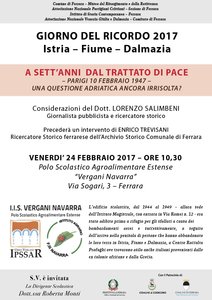 Per ulteriori dettagli sul programma di iniziative in occasione del Giorno del Ricordo 2017 vedi Cronaca Comune del 3 febbraio 2017
